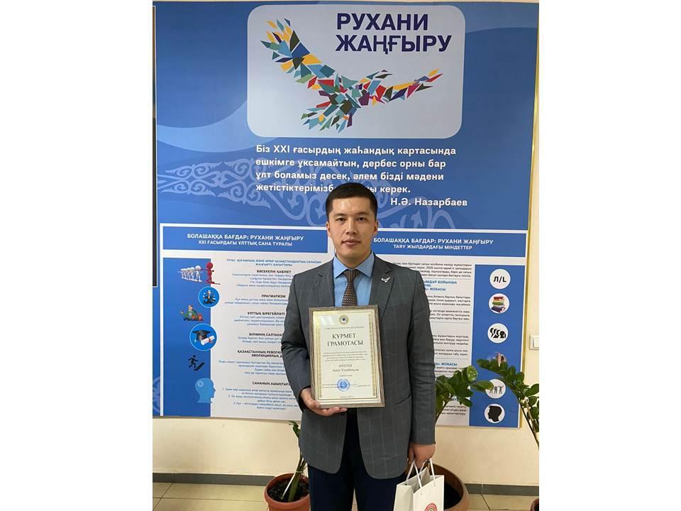 Ұстаздар күні мерекесіне орай Алматы қаласының білім беру жүйесіне және жас ұрпаққа өнегелі тәрбие беру ісіне сіңірген еңбегі үшін әріптесіміз, қазақ тілі мен әдебиеті пәнінің мұғалімі ӨТЕГЕН БЕКЕТ ҮСЕНБЕКҰЛЫ Алматы қаласы Білім басқармасының ҚҰРМЕТ ГРАМОТАСЫМЕН марапатталды. Әріптесімізді мереке қарсаңындағы мерейлі жетістігімен шын жүректен құттықтаймыз!