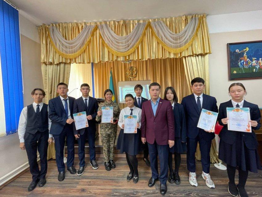 Патриоттық әндер конкурсына 8 «А», 8 «Ә», 9 «А», 9 «Ә», 10 «А», 10 «Ә» сынып оқушылары белсене атсалысып, өз өнерлерін көрсетті. Көрермен көзайымына айналып, өзіндік шығармашылық қарым-қабілетімен ерекшеленген үздік өнерпаздар мектеп әкімшілігінің дипломдарымен және сыйлықтарымен марапатталды.