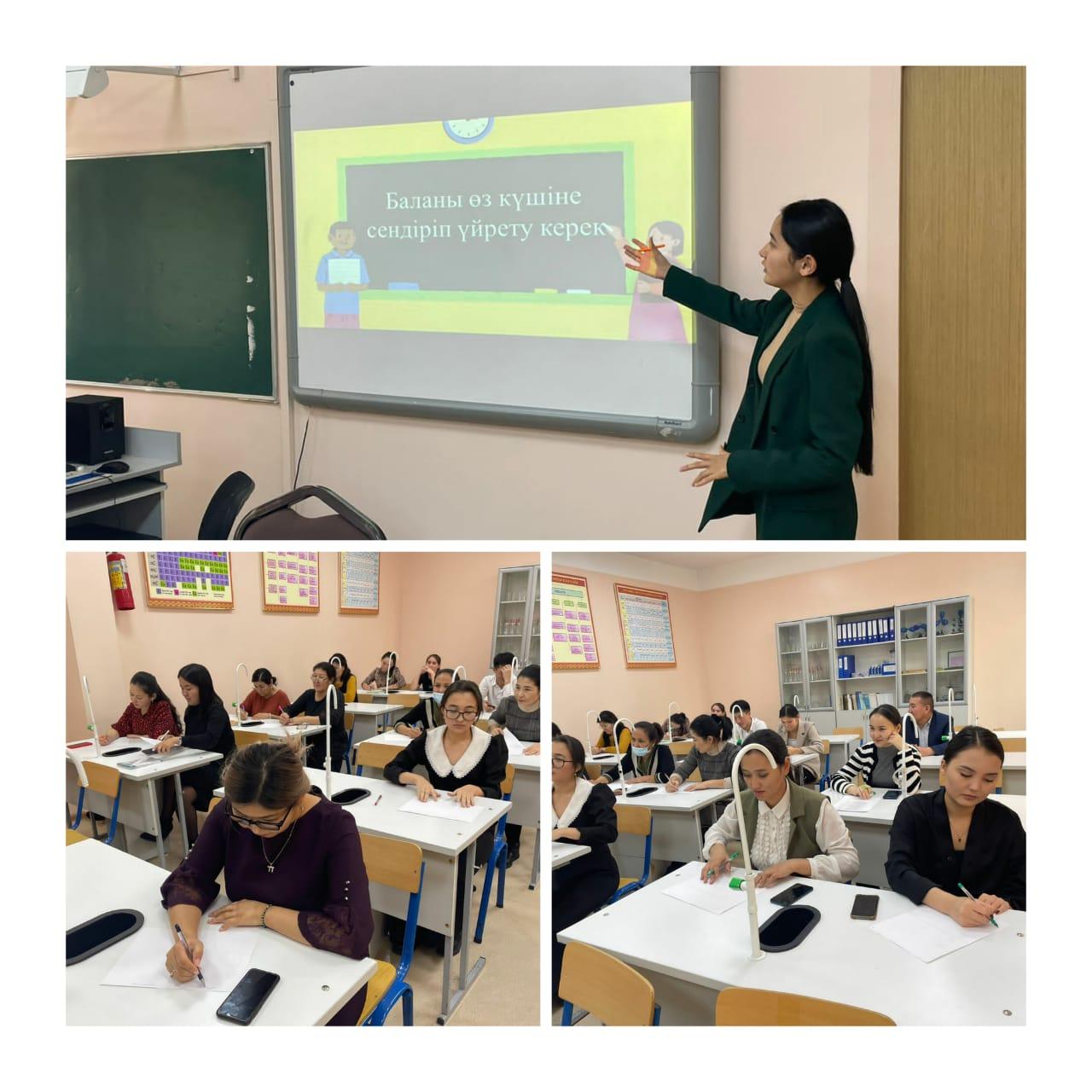 Тренинг барысында мектеп ұстаздары оқушылардың өзіне деген сенімділігін дамытуға ықпал ететін белсенді әдіс-тәсілдермен танысып, топта талдау жұмыстарын жүргізді.