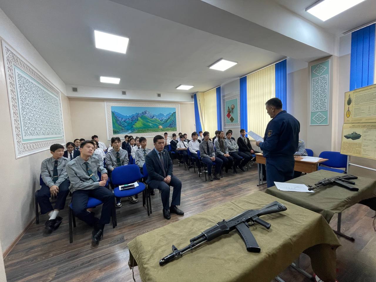 Әскери сайыста оқушылар мен жас мұғалімдер Калашников автоматын жартылай бөлшектеу және құрастыру бойынша бақ сынасты.