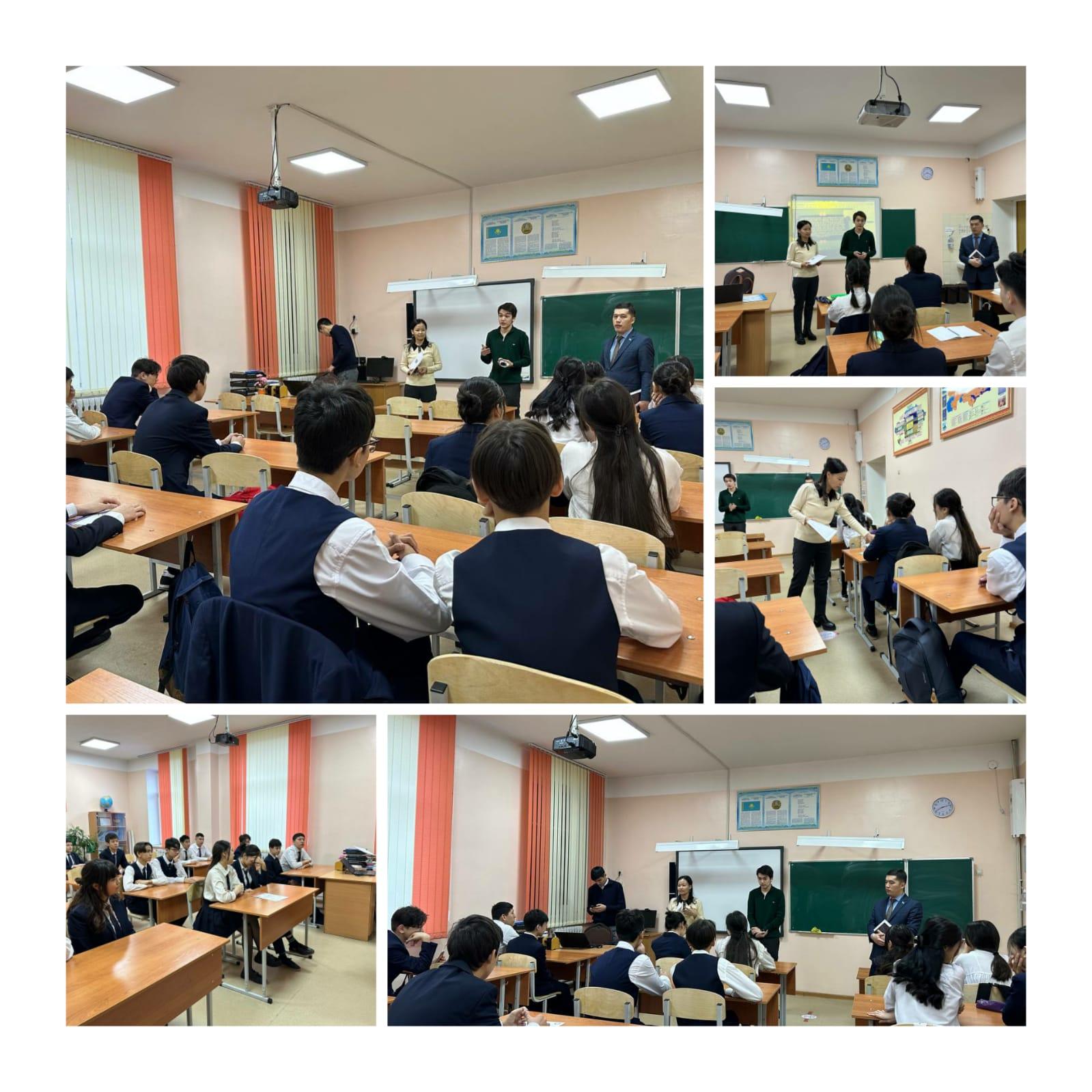 Осы мәселеге байланысты 2023 жылдың 14 ақпан күні мектебіміздің 9-сынып оқушылары «Әділет» колледжінің мамандарымен кездесті.