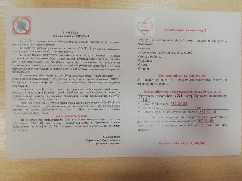 » COVID-19 бойынша тұрғындар үшін жадынама