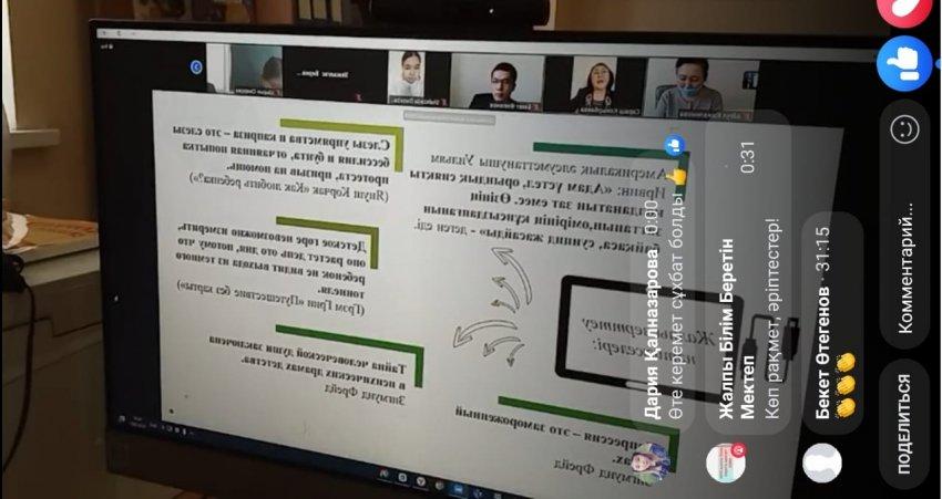 ?Ақпан айының он екінші жұлдызында мектебімізде ҚР Тұңғыш Президенті – Елбасы Н.Ә.Назарбаевтың «Болашаққа бағдар: рухани жаңғыру» бағдарламалық мақаласы мен Тәрбие тұжырымдамасының басым бағыттарын жүзеге асыру аясында аудан көлемінде «Ұрпақ тәрбиесіндегі өзекті мәселелер: суицид пен діни фанатизмнің алдын алу» атты онлайн сұхбат өткізілді.