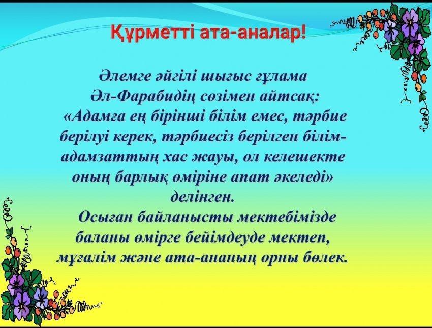 » «ДИРЕКТОРЛЫҚ СЕНБІ — АТА-АНАЛАР ҮНІ»