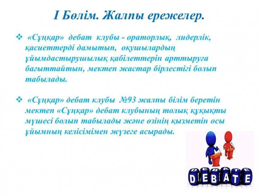 » №93 жалпы білім беретін мектептің «Сұңқар» Дебат Клубы.