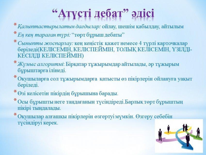 » Оқушылардың айтылым дағдыларын дамытуға арналған белсенді дебат әдістері.