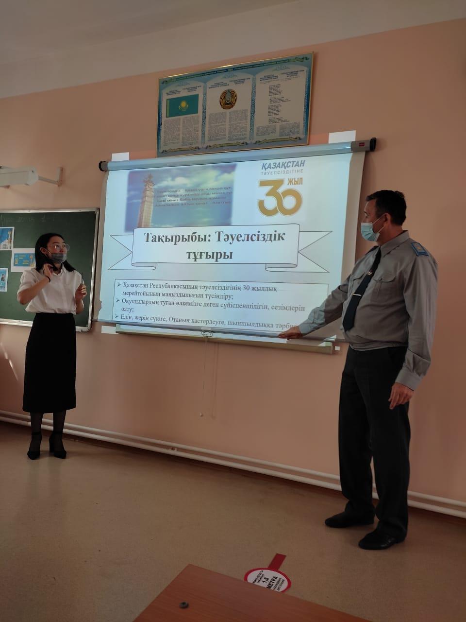 Ерлік сағатының барысында патриоттық мазмұндағы материалдар көрсетіліп, оқушылармен сұрақ-жауап, өзара пікір алмасу болды.