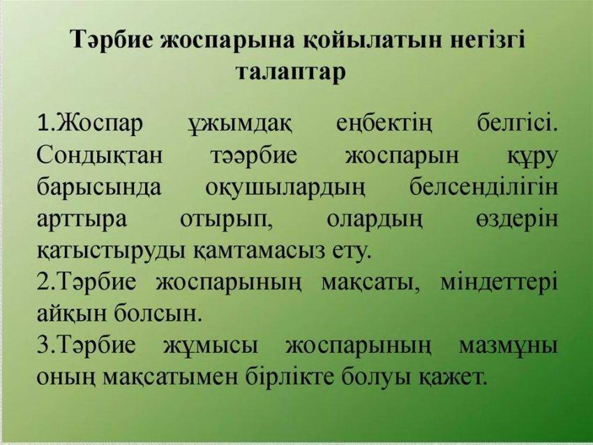Мектептің оқу мен тәрбие жұмысына қойылатын талаптар