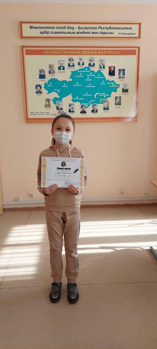 ◾5 «Ә» сынып оқушысы Матаева Ақмарал (ІІ орын). Жетекшісі: Сүлейменова Гүлнұр Жұмабекқызы.