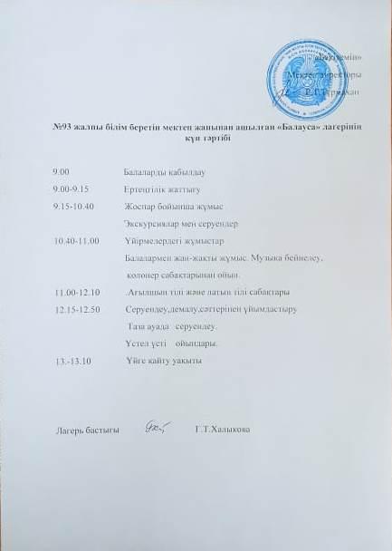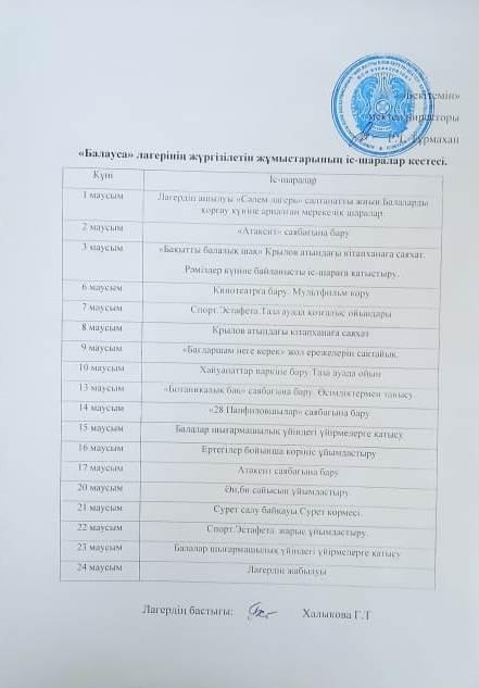 » Мектеп жанындығы "Балауса" жазғы сауықтыру лагері