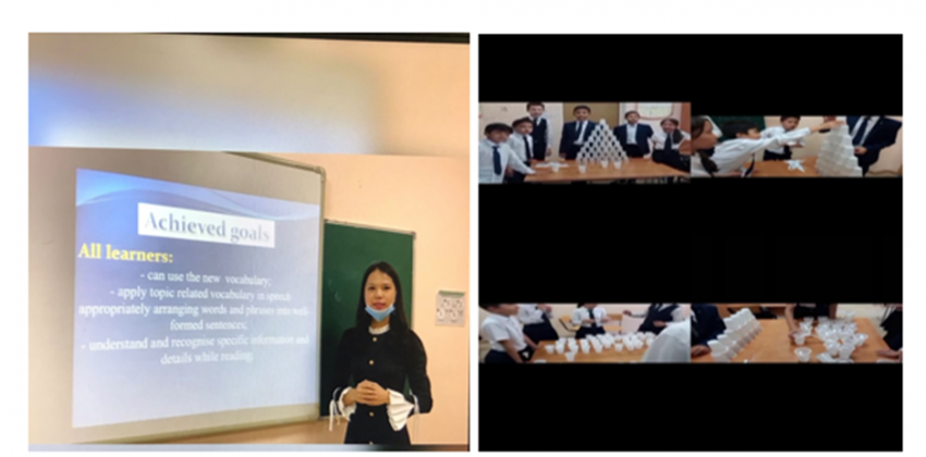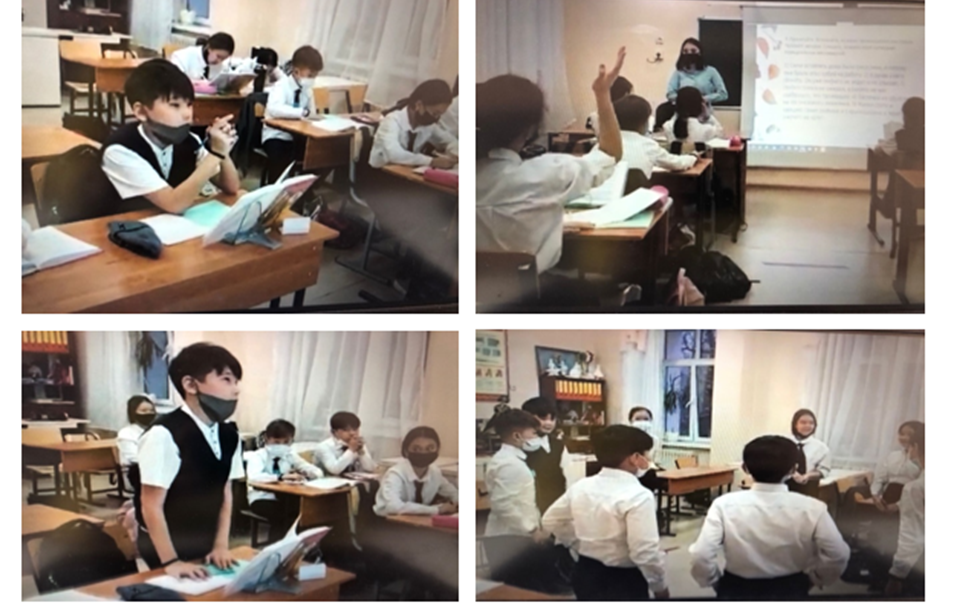 Мәтіннің үзіндісін бере отырып, ондағы көріктегі құралдарды тауып, сөз құдіретінің қандай екенін шәкірттеріне байқатты. Сонымен қатар қазақ тіліменде сабағын ұштастырып отырды. Дәлірек айтсақ мәтіннен шылауларды көп нүктенің орнына қойдырды. Сабағында кері байланыс жасап, «Блоб» ағашы арқылы бағаланды. Ұстаз сабағын заманауи тәсілген өткізе білді.