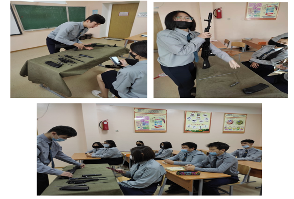 Оқушылардың мемлекеттік қорғаныс дайындығы 5-9 сыныптарда дене шынықтыру сабақтарында "Өмiр қауiпсiздігi негiздерi" өткізілді, 11 сыныптарда АӘД бағдарламасының мемлекетік қорғаныс бөлiмi бойынша өткiзiлген сабақтарда үйретiлдi.
