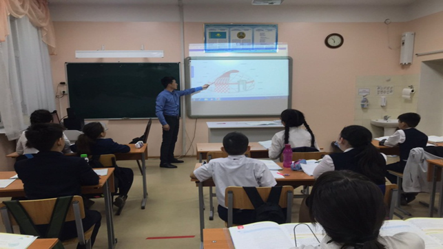 24 ақпан күні ашық сабақты математика пәні мұғалімі Қуанышбай Мухаммедзаңғар Маратұлы 5 «А» сыныбына «Ондық бөлшектерді 10; 100; 1000... және 0,1; 0,01; 0,001... сандарына көбейту және бөлу» тақырыбына өтті. Оқушылар сабаққа түгел қатысты және де сабақ жаңартылған бағдарлама бойынша өткізілді. Сабақ барысында жеке, жұптық, топтық жұмыстар жасалынды. Мұғалім, сабақты қызықты әрі пайдалы қылу мақсатында: Kahoot және classdojo қосымшаларын пайдаланды. Бұл қосымшалар сабақты ойын түрінде өткізіп, әр топтар ұпай жинап бір-бірімен бәстесу арқылы, оқушылар жақсы көрсеткіштерге жетуге тырысты. Барлық оқушылар өз бағаларын алып: әр-қайсысы өзінің мықты тұстарын айқындай түсті. Бір оқушы өзінің алғырлығымен болса, бір оқушы жылдамдығымен, ал біреуі тапқырлығымен ерекшеленгенін мұғалім ескере өтті. Соңында мұғалім кері байланыс жасау арқылы, қашықтықтан смайликтермен бағалау жүргізді.