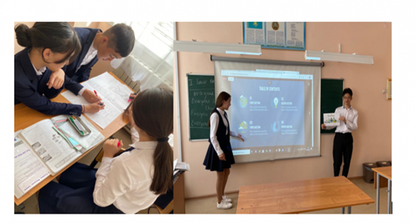Ұстаз оқушыларын топқа бөліп, әр топқа тақырыптарын бөліп беріп, «ДЖИГСО» әдісі арқылы мазмұнын оқып, өзге топқа түсіндірді.