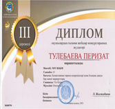 Жалпы білім беретін пәндер бойынша оқушылардың республикалық ғылыми жоба конкурсының II кезеңінде топ жарып, жүлделі орындарға ие болған шәкірттеріміз Алматы қаласы Білім басқармасының дипломдарымен марапатталды. Олар: