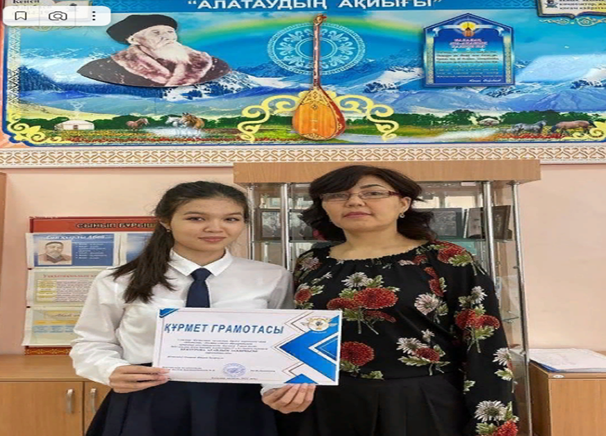 ?1-мамыр — Қазақстан халқының бірлігі күні мерекесіне орай «Ынтымақ — достық кепілі» тақырыбында өткен аудандық эссе байқауында мектебіміздің 11-сынып оқушысы Бектурова Арайлым Закирқызы жеңімпаз атанып, жүлделі I (бірінші) дәрежелі дипломға ие болды. Жеңімпаз шәкіртімізді шын жүректен құттықтаймыз!