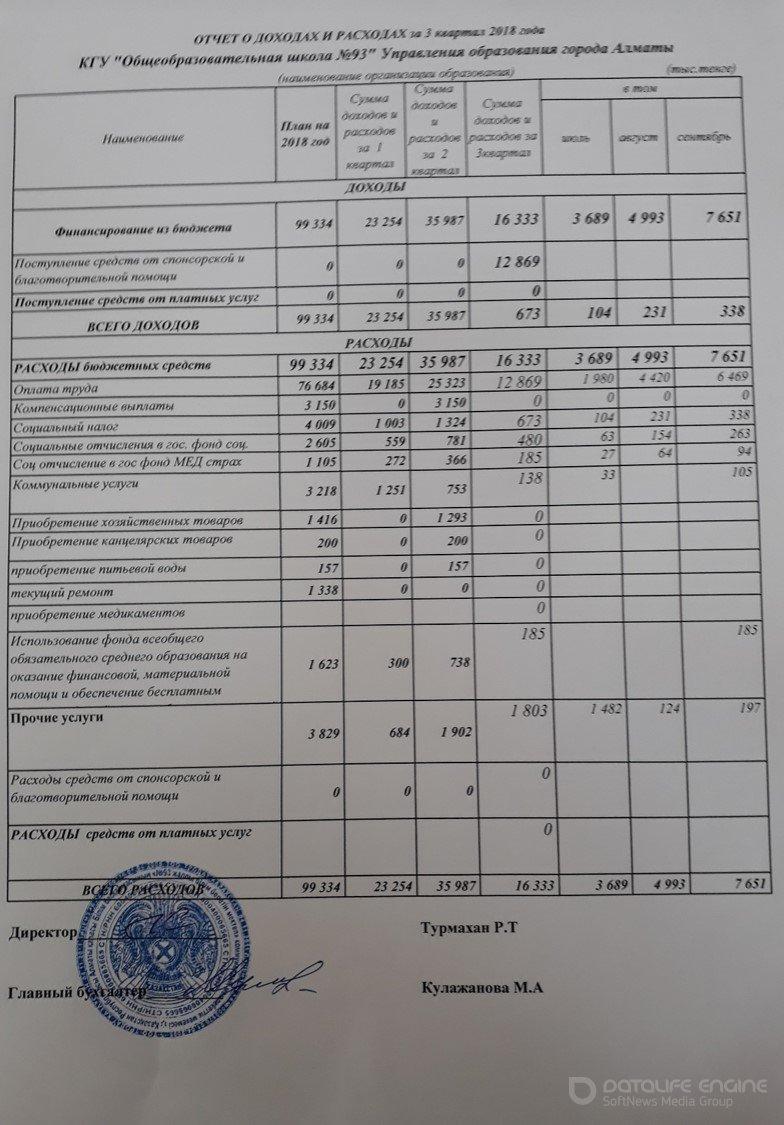 » Отчет о доходах и расходах за 3 квартал 2018г.