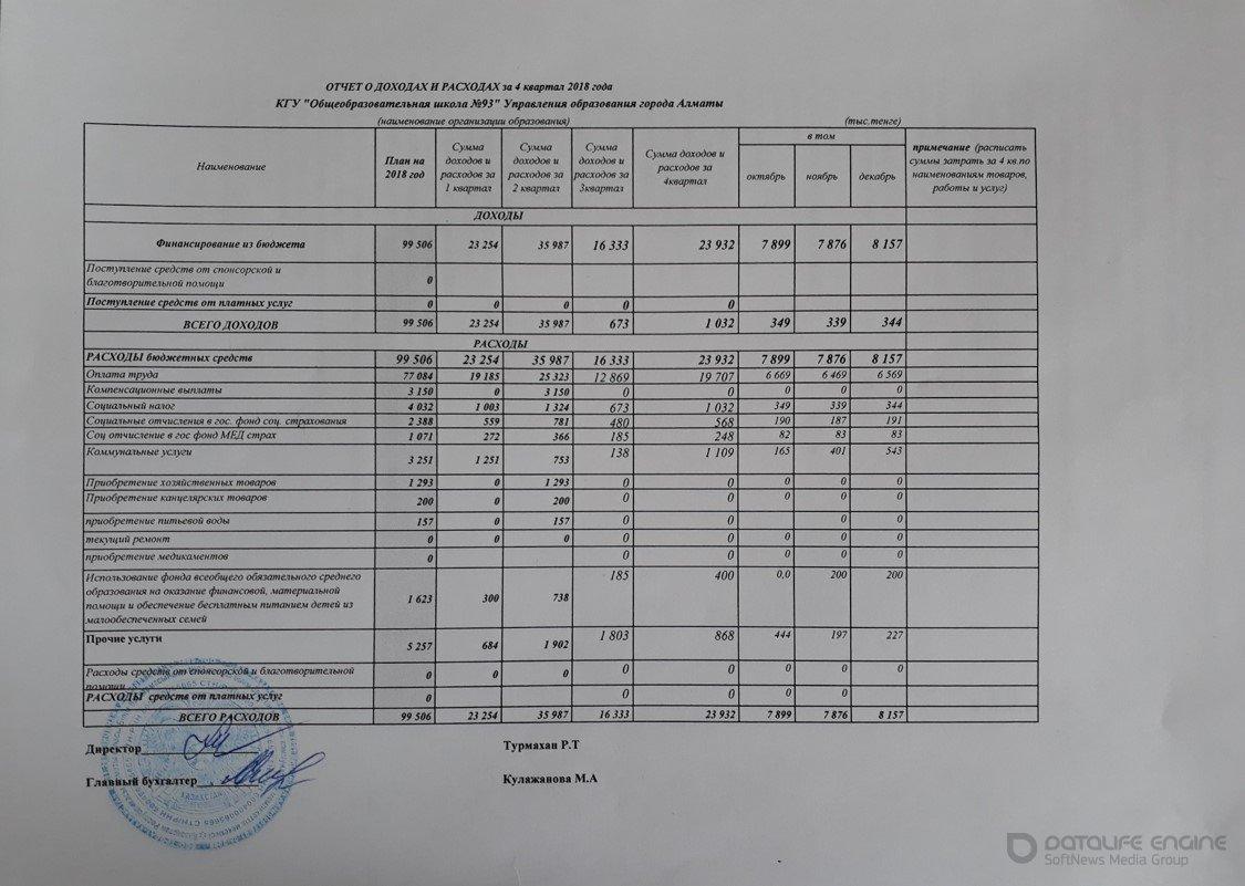 » Отчет о доходах и расходах за 4 квартал 2018г.