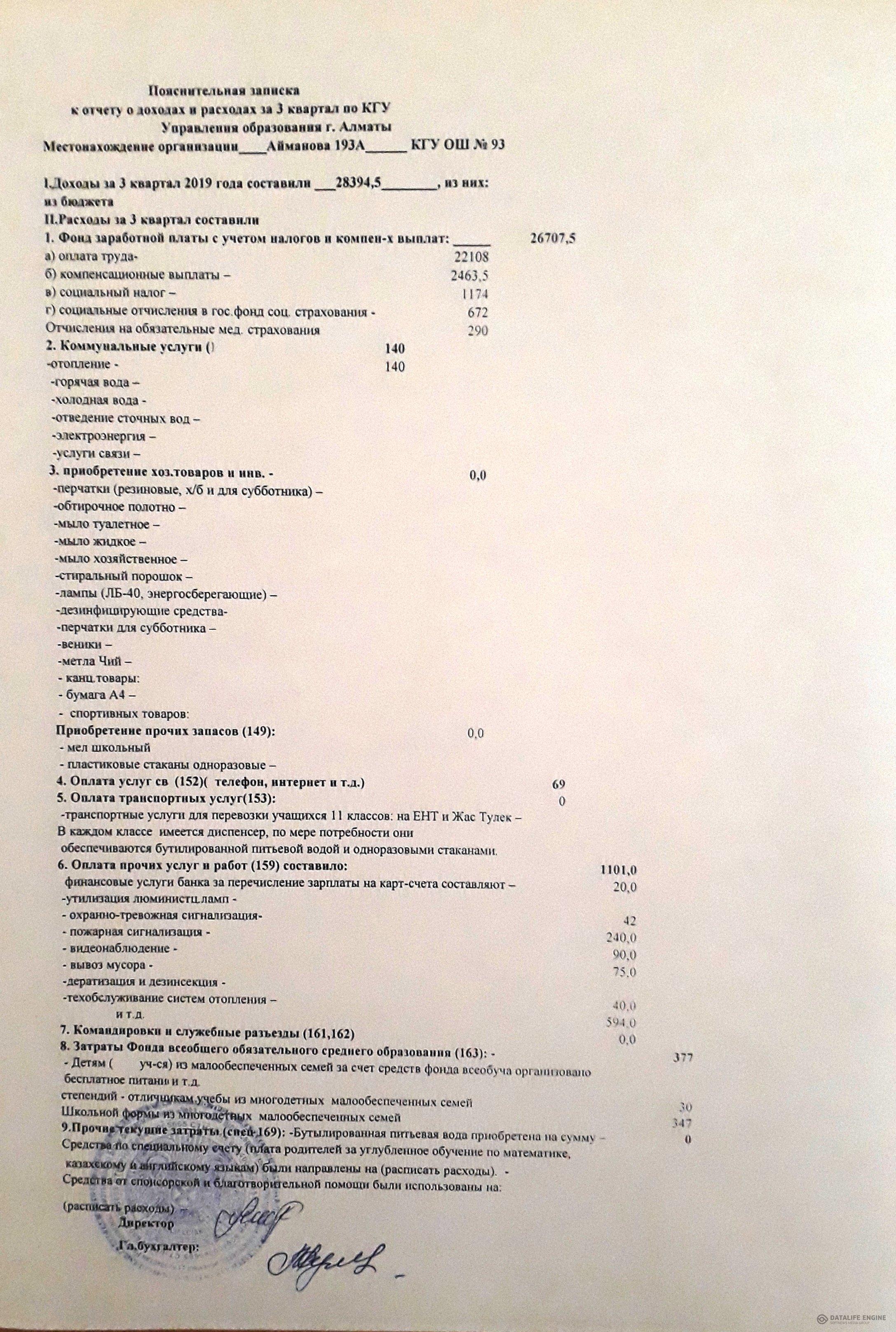 » Отчет о доходах и расходах за ІІІ квартал 2019 года
