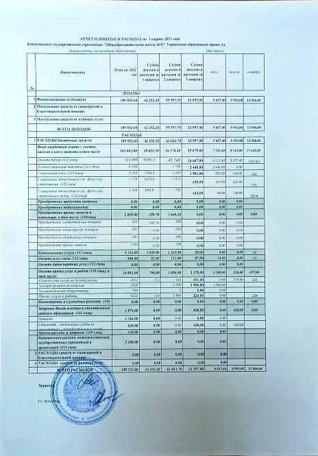 » 2021 жылғы III тоқсандағы кірістер мен шығыстар туралы есеп