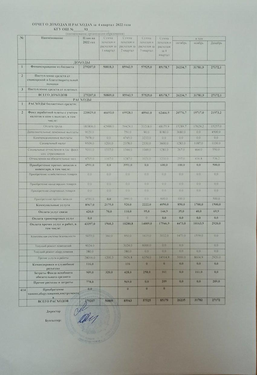 » 2022 жылдың IV кварталы бойынша кіріс және шығыс есебі