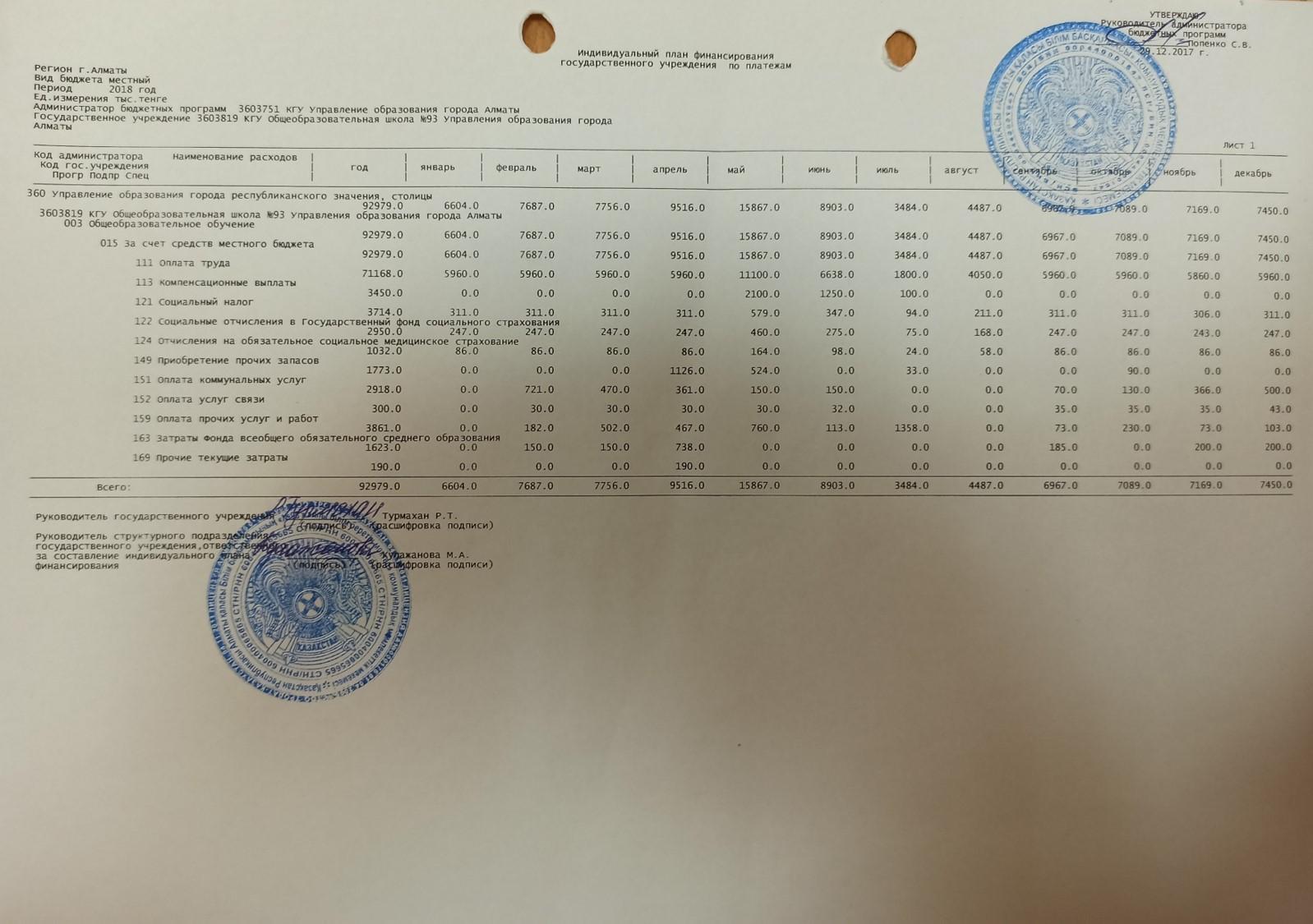 Коммунальное государственное учреждение «Общеобразовательная школа № 93 » Управления образования города Алматы