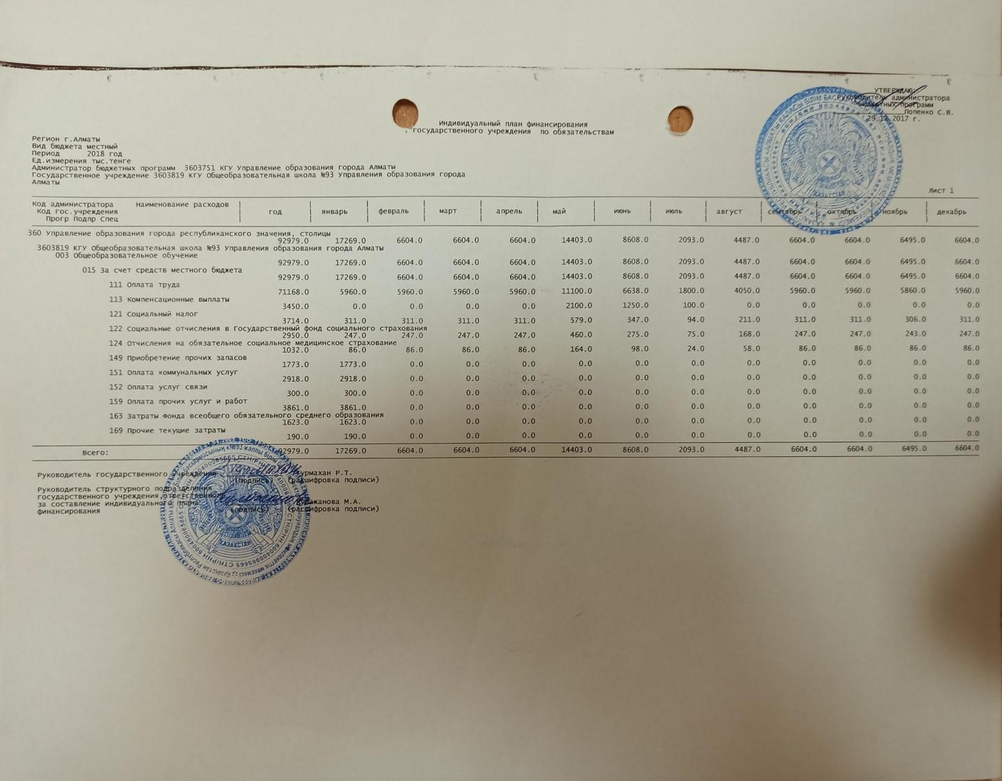 Коммунальное государственное учреждение «Общеобразовательная школа № 93 » Управления образования города Алматы