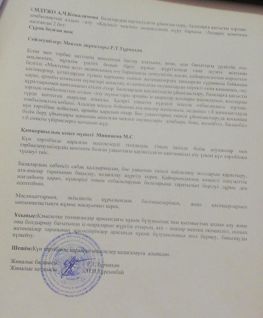 Директор жанындағы әкімшілік кеңестің хаттамасы