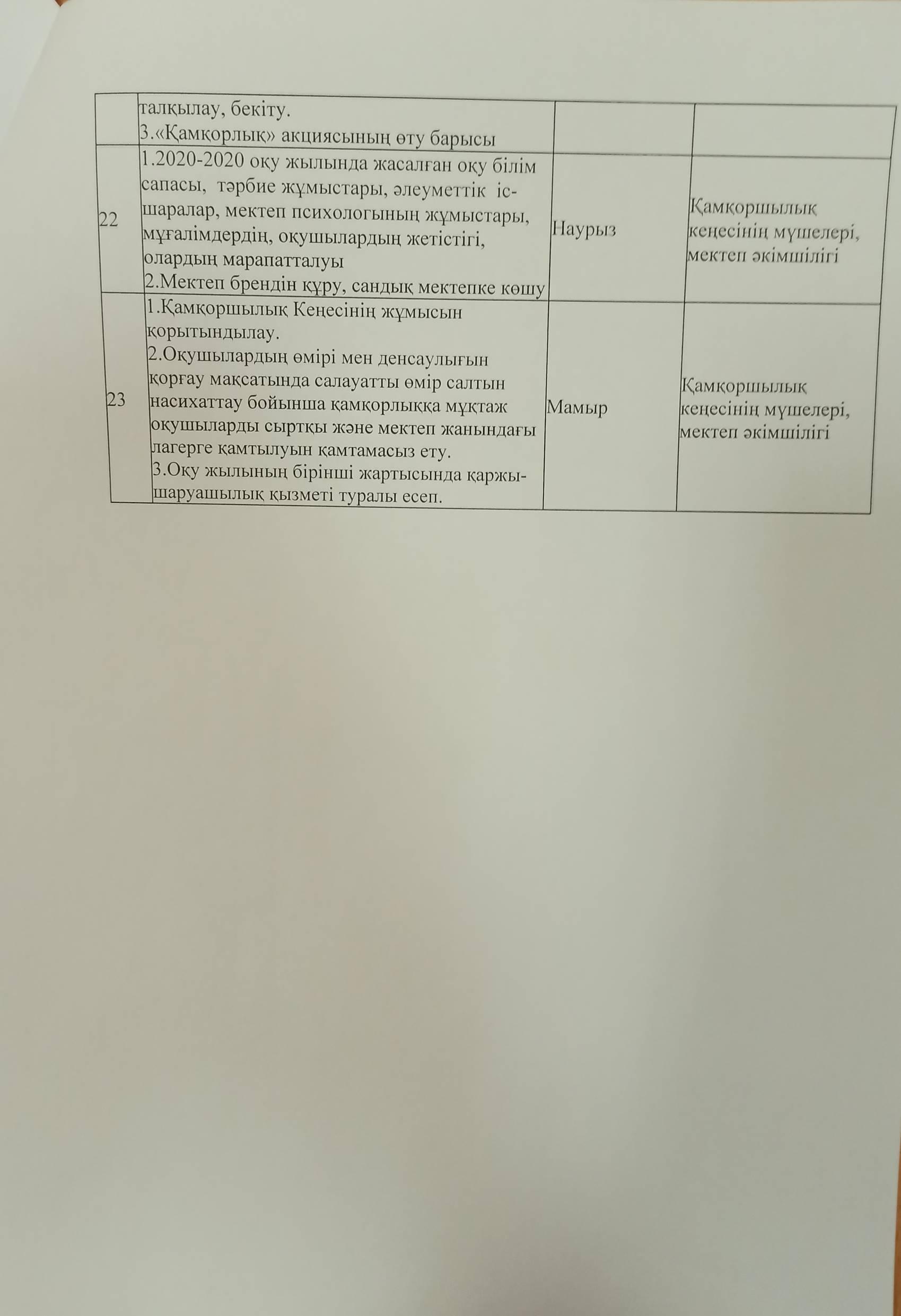 Қамқоршылық кеңестің жұмыс жоспары 2020-2021 оқу жылы