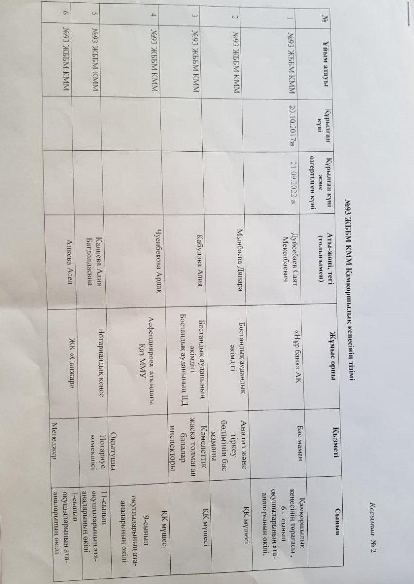 Қамқоршылық кеңестің құрамы 2022-2023 оқу жылы