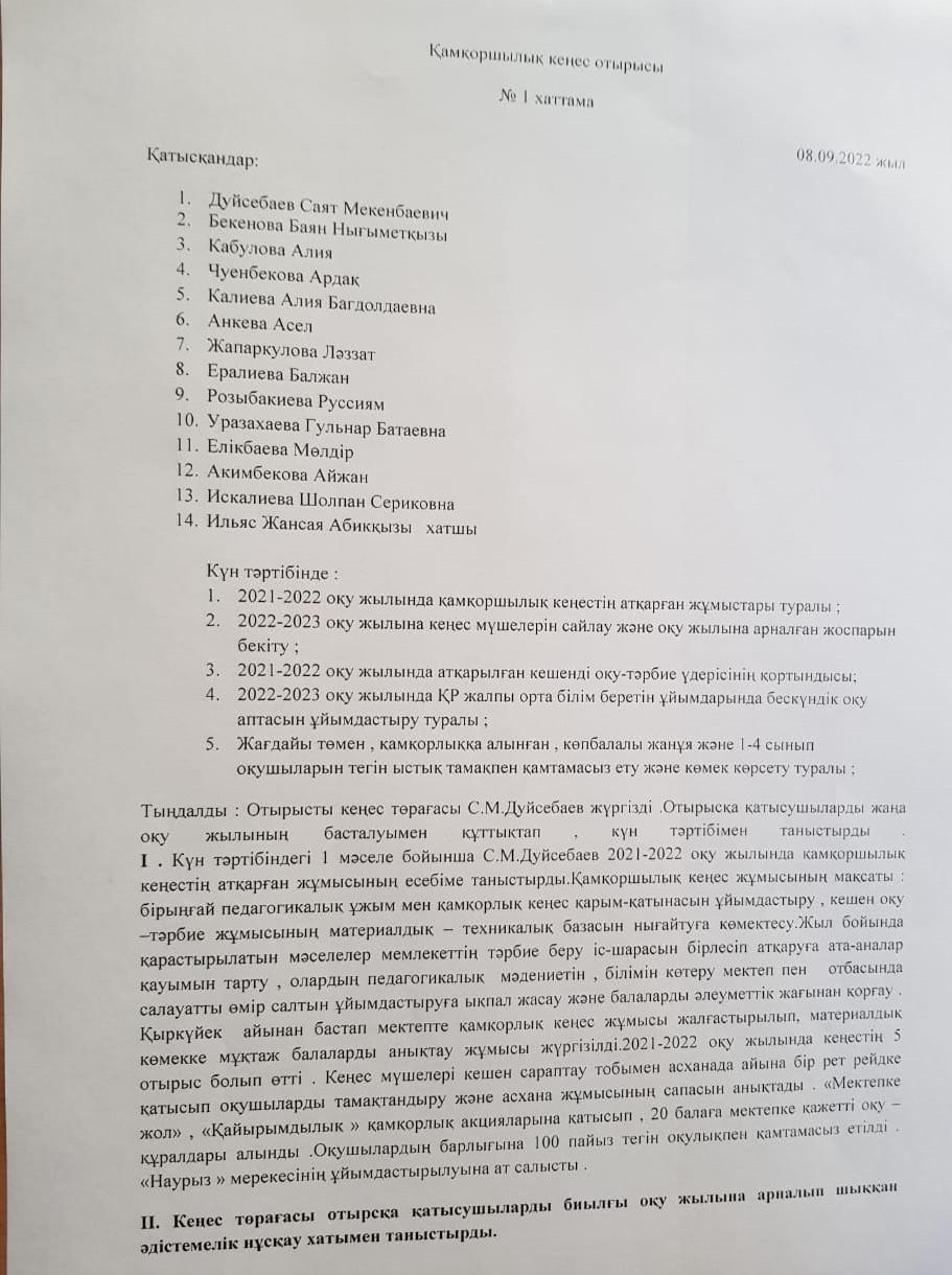 қҚамқоршылық кеңестің хаттамасы
