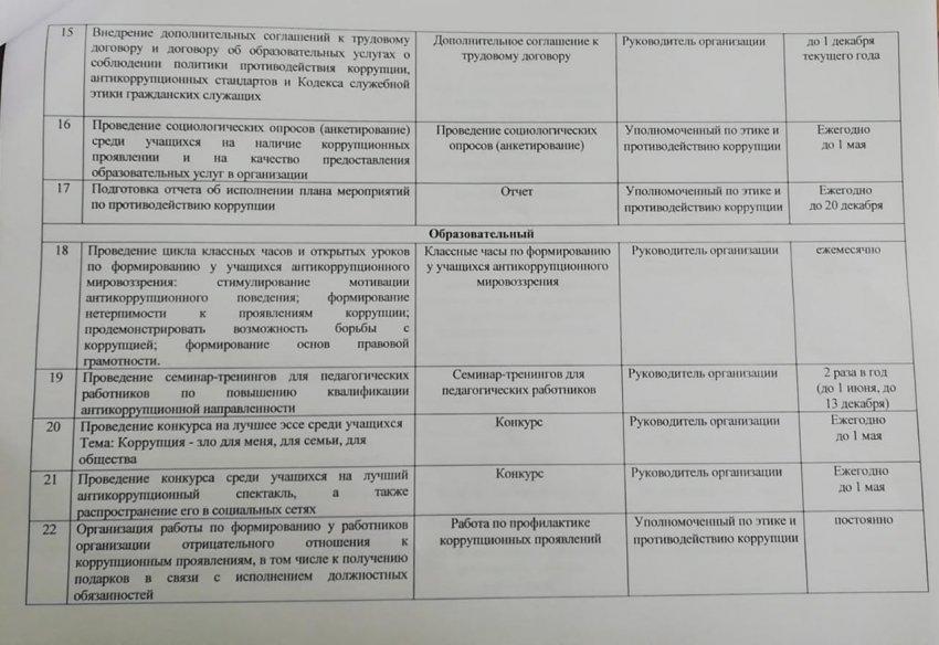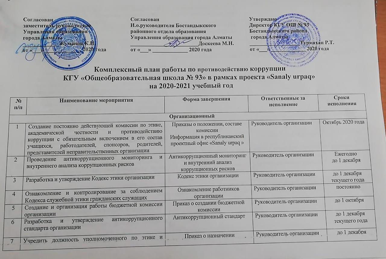 Комплексный план работы по противодействию коррупции на 2020-2021 учебный год