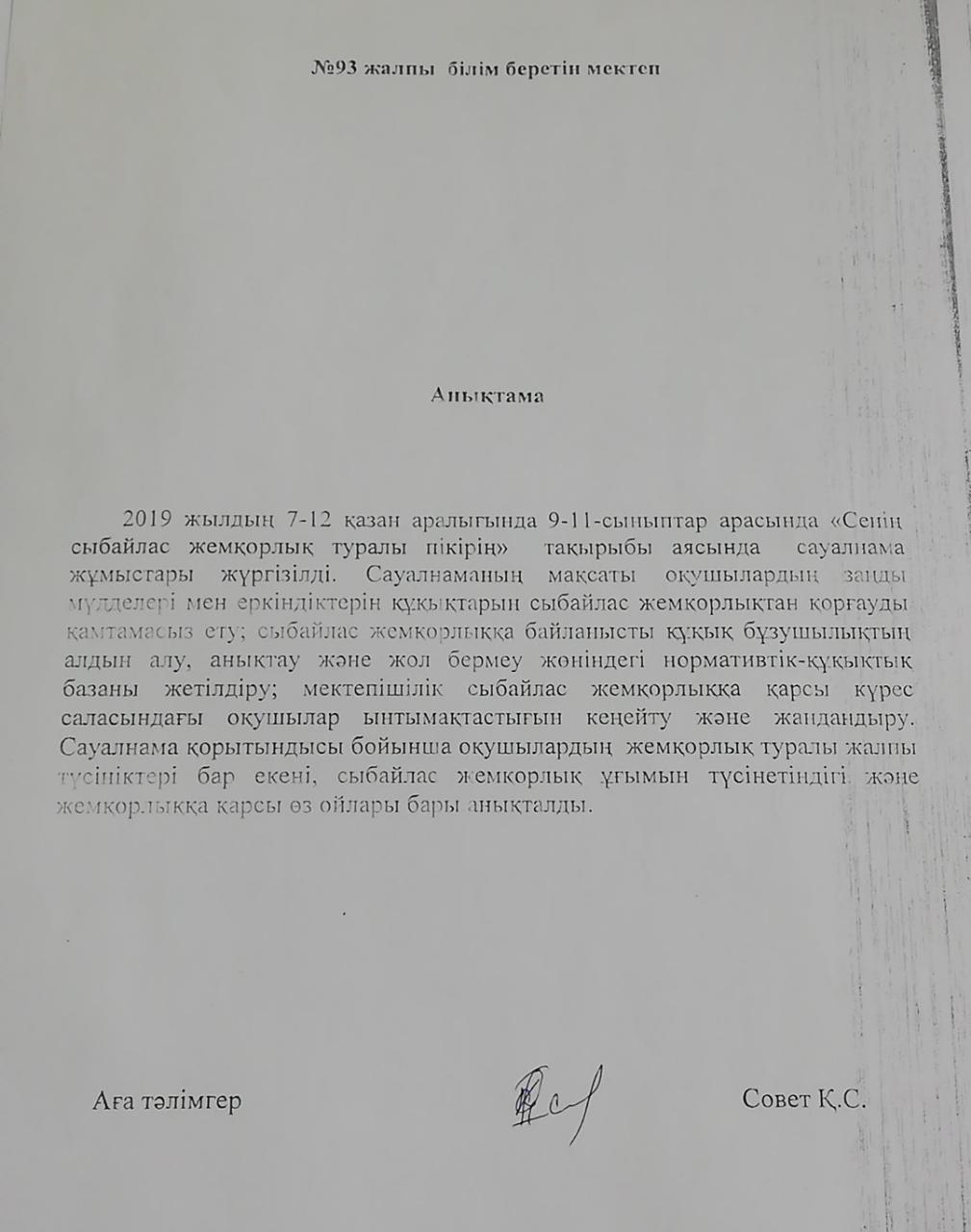 Коммунальное государственное учреждение «Общеобразовательная школа № 93 » Управления образования города Алматы