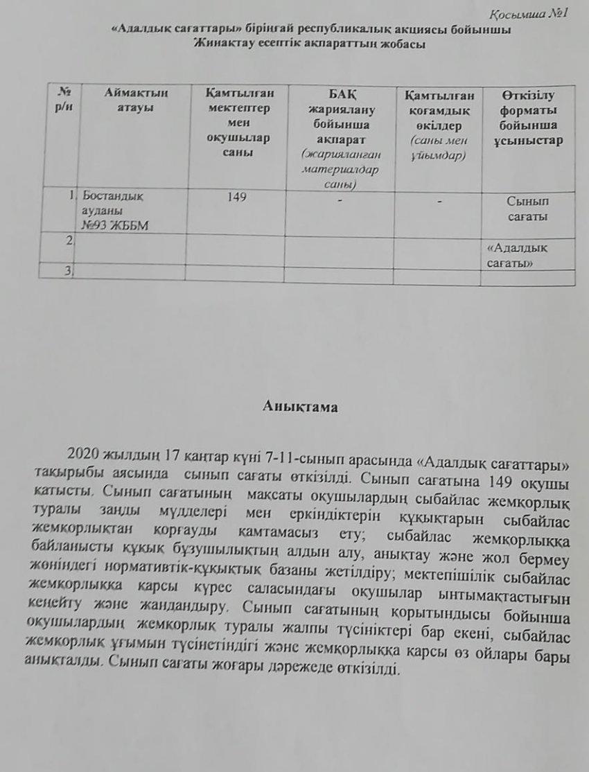 Коммунальное государственное учреждение «Общеобразовательная школа № 93 » Управления образования города Алматы
