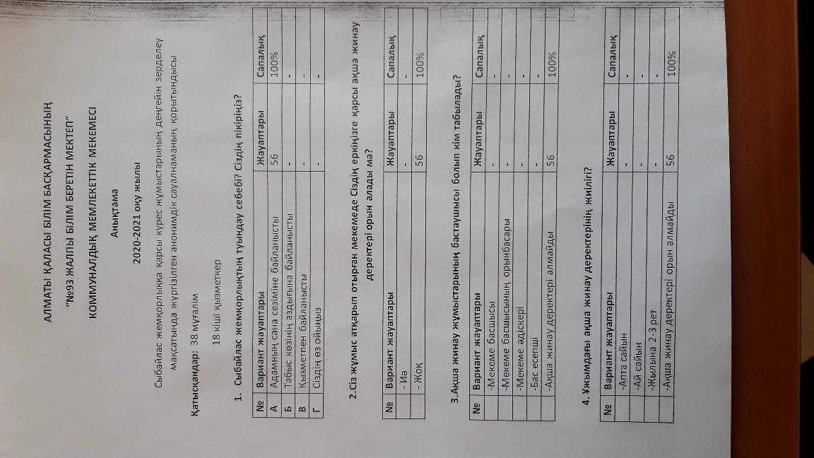Сыбайлас жемқорлыққа қарсы күрес жұмыстарының деңгейін зерделеу мақсатында жүргізілген анонимдік сауалнама қортындысы