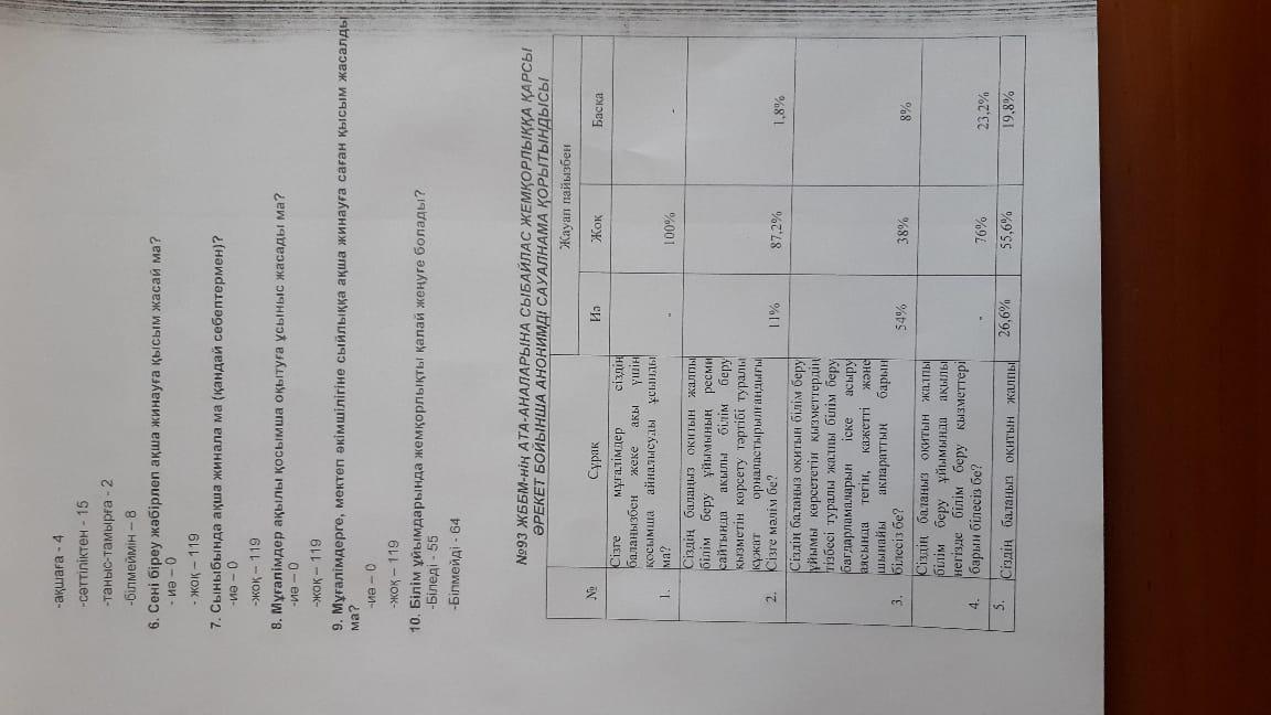 Сыбайлас жемқорлыққа қарсы күрес жұмыстарының деңгейін зерделеу мақсатында жүргізілген анонимдік сауалнама қортындысы
