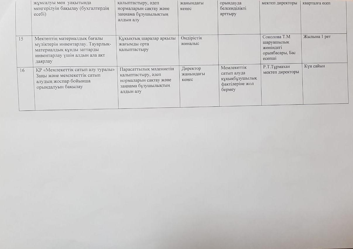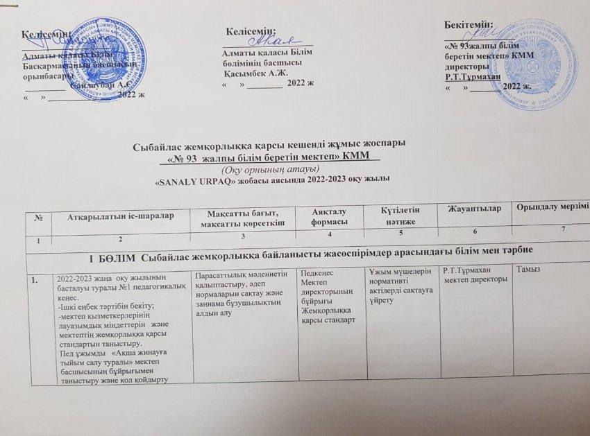 Сыбайлас жемқорлыққа қарсы кешенді жұмыс жоспары 2022-2023 оқу жылы