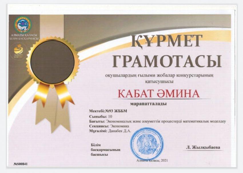 Коммунальное государственное учреждение «Общеобразовательная школа № 93 » Управления образования города Алматы