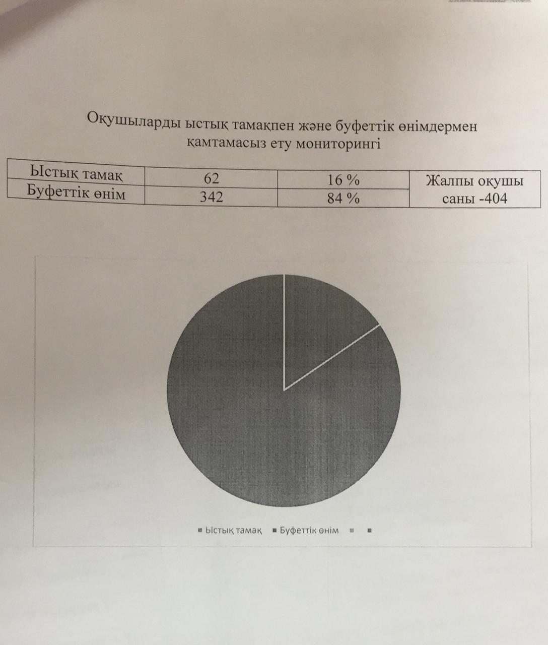 » Тамақтандырудың сапасына мониторинг жүргізуін тексерудің қорытындысы