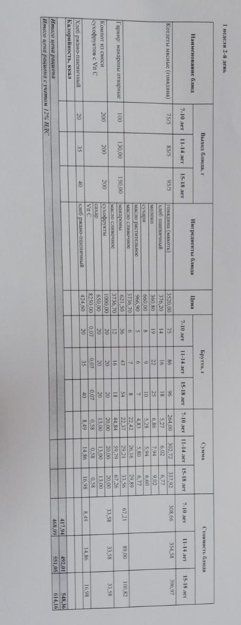 №93 жалпы білім беретін мектеп асханасындағы Жалпыға міндетті оқыту қоры есебінен тегін тамақтанатын оқушылардың 2020 жылға арнналған (қыс- көктем) ас мәзірі І ІІ ІІІ ІV апталары