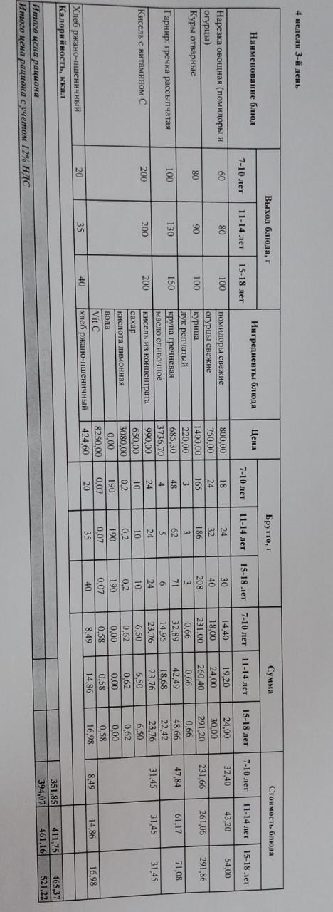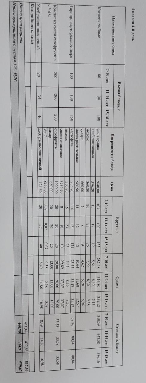 Жалпыға бірдей міндетті оқу қоры есебінен тегін тамақтанатын оқушылардың ас-мәзірі І, ІІ, ІІІ, ІV апта