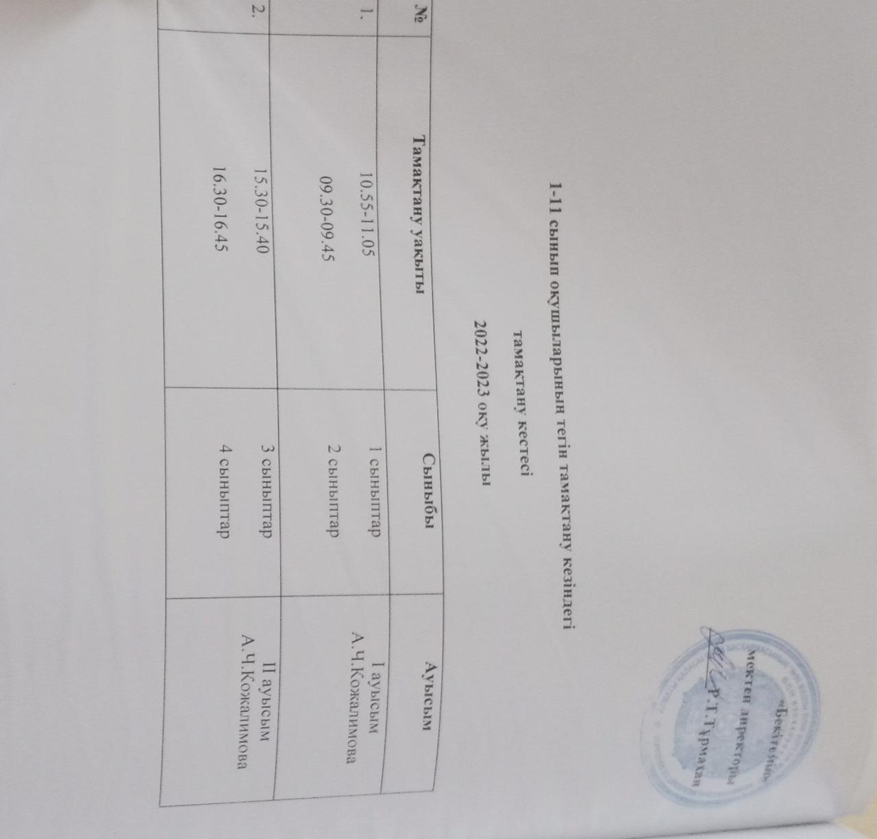"Дұрыс тамақтану-болашақ ұлттың денсаулығы" атты онкүндіктің жұмыс жоспары 2021-2022 оқу жылы