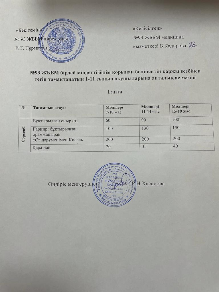 Жалпыға бірдей міндетті оқу қоры есебінен тегін тамақтанатын оқушылардың ас-мәзірі І, ІІ, ІІІ, ІV апта