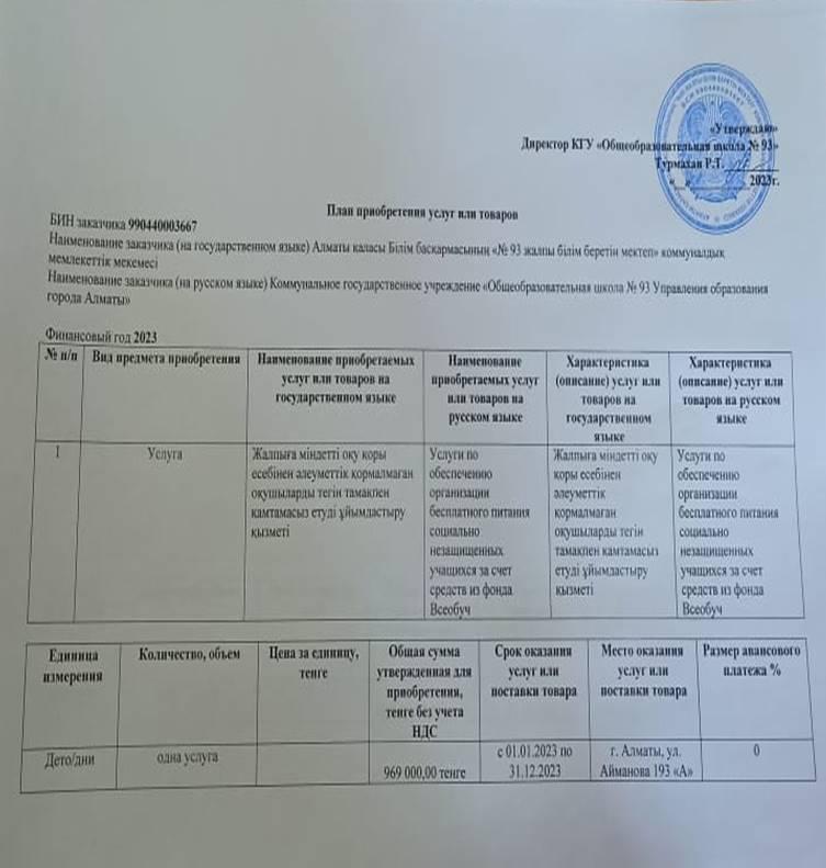 » Қызметтерді сатып алу жоспары 2023